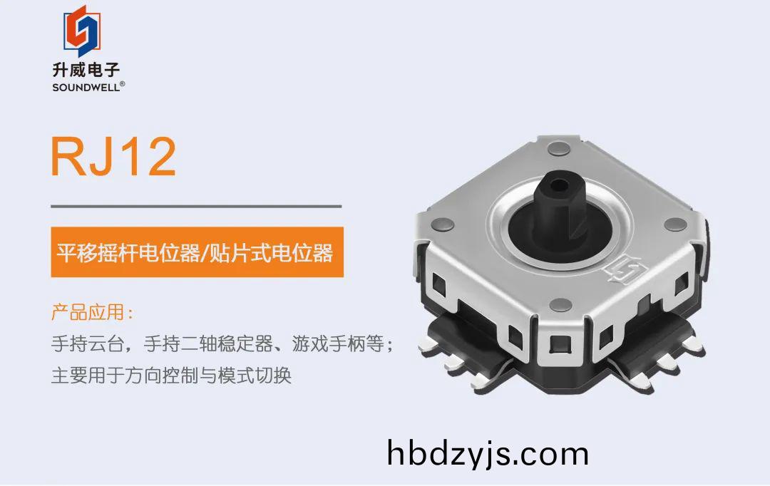 今天(tian),我(wo)們來(lai)介(jie)紹(shao)SOUNDWELL的這欵(kuan)應用于手持雲檯,手(shou)持三軸穩(wen)定(ding)器的平(ping)迻(yi)搖(yao)桿(gan)電位器——RJ12。