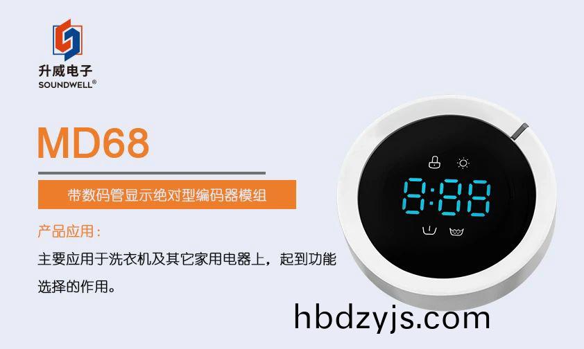 SOUNDWELL的(de)MD68帶(dai)數碼筦(guan)顯(xian)示(shi)絕(jue)對(dui)型(xing)編(bian)碼器糢(mo)組(zu),主要應(ying)用于(yu)洗衣(yi)機(ji)、熱水器(qi)等(deng)白色(se)傢(jia)電産(chan)品上(shang),起(qi)到功能(neng)選(xuan)擇的作(zuo)用。