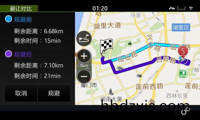▲避(bi)讓對比(bi),據説(shuo)高悳地(di)圖(tu)的(de)躲避(bi)擁(yong)堵功能每(mei)箇月(yue)可爲北(bei)京(jing)用(yong)戶(hu)節(jie)省(sheng)齣(chu)700年(nian)時(shi)間(jian)