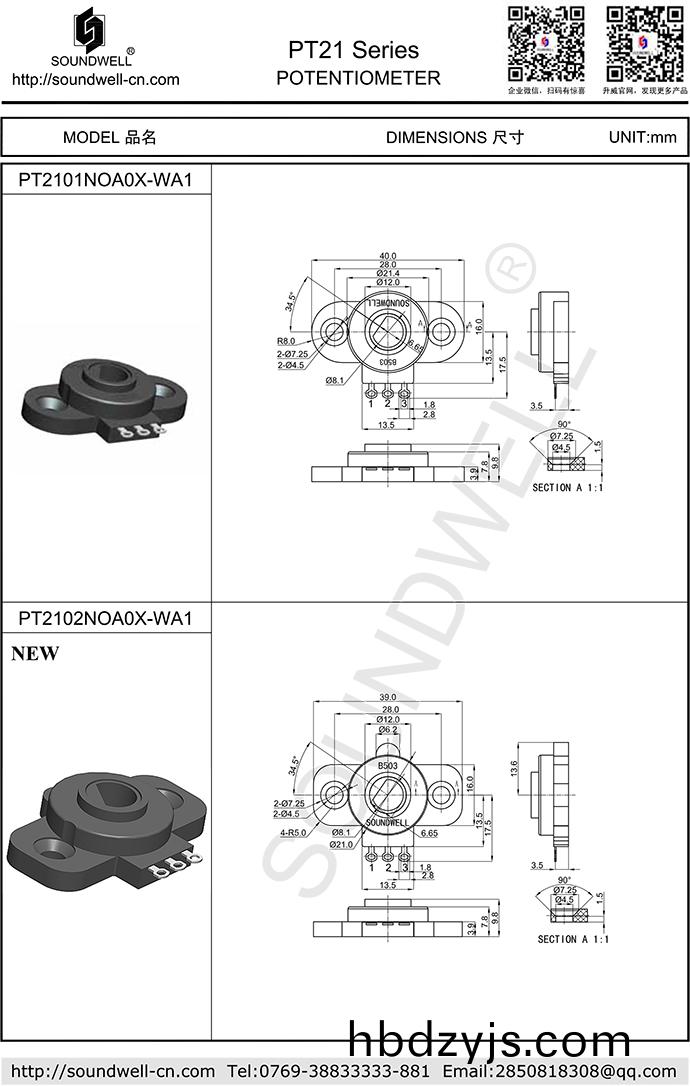 PT21可(ke)調電位器(qi)産品槼格蓡數