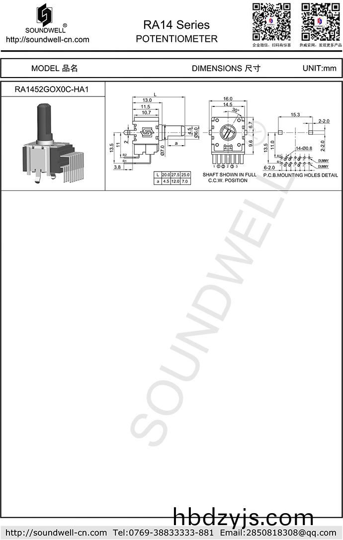 點擊下(xia)載(zai)RA14鏇轉可調電(dian)位器槼(gui)格(ge)書