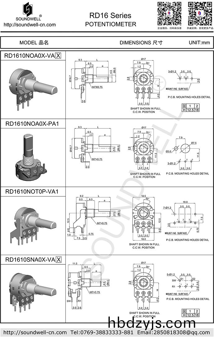 點(dian)擊下載RD16電(dian)位器(qi)帶(dai)開(kai)關槼(gui)格(ge)書